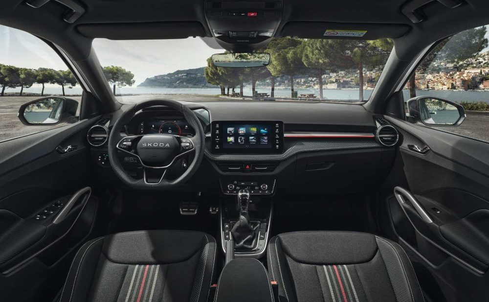 Interiér je navržen tak, aby poskytoval maximální komfort a ovládání v každé situaci. Sportovní sedadla s bočním vedením poskytují optimální oporu při dynamickém projíždění zatáčkami. Tříramenný multifunkční sportovní volant a pedály s nerezovými krytkami dále přispívají k atmosféře zaměřené na výkon. Speciální prahové lišty z černého hliníku a stříbrné dekorativní prvky na palubní desce a madlech dveří dodávají interiéru sportovní nádech. Součástí standardní výbavy je 10“ virtuální kokpit a volitelný 9“ displej infotainmentu s navigací poskytuje pokročilé možnosti připojení.