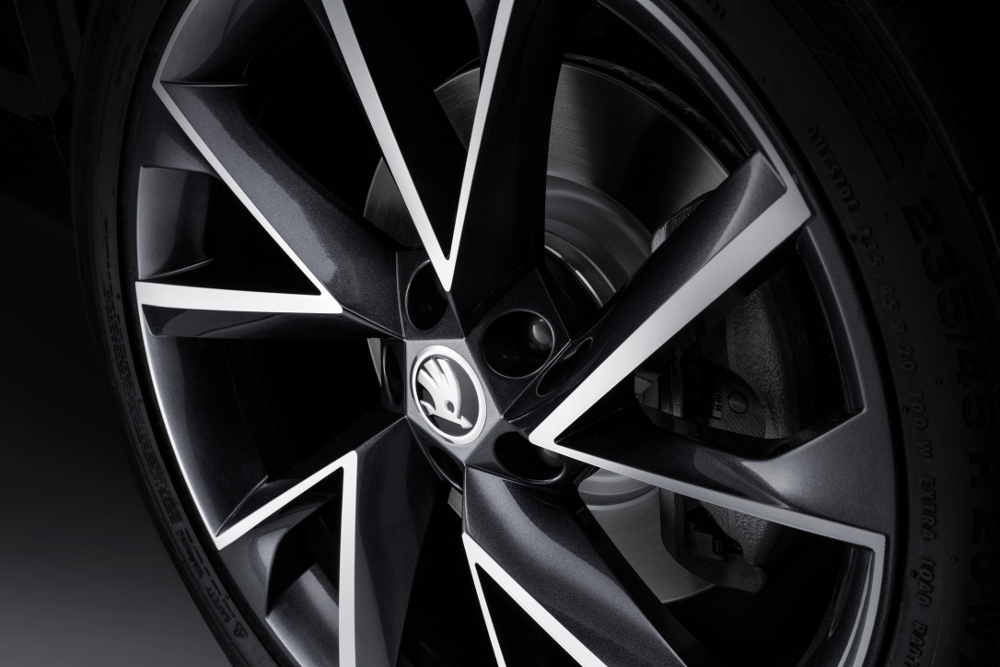 ŠKODA KODIAQ umí udělat dojem: široká, trojrozměrně tvarovaná mřížka chladiče má výrazný charakter. V kombinaci s nízkými, klínovitými světlomety, které poprvé využívají výhradně světelné zdroje LED, dodává prvnímu velkému SUV značky nezměnitelný vzhled. Výrazně tvarované jsou také boky a záď: Plochy dveří jsou tvarované atleticky, výrazná je i záď. Zadní skupinové svítilny, sériově osazené světelnými diodami LED, svítí ve tvaru písmene C, typickém pro vozy značky ŠKODA.