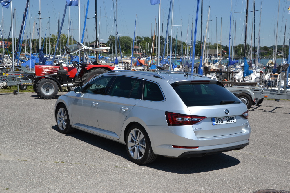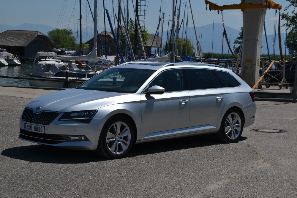 Při krátké zastávce v podhůří Alp se o škodováckou novinku živě zajímal i německý majitel předchozí generace Superbu Combi, a tak jsme mohli pořídit i snímek s názvem „setkání generací“. Během odpoledne a dopoledne následujícího dne jsme najezdili se Superbem Combi tři stovky kilometrů. Při zpáteční cestě na letiště jsme si vyzkoušeli silnější dvoulitrový turbodiesel s výkonem 140 kW, se šestistupňovou přímo řazenou převodovkou a pohonem všech kol v nejvyšší luxusní výbavě Laurin Klement, který by se mohl stát „černým koněm“ mnoha podnikatelů. Tento model je ideálním společníkem na dlouhé cesty. Kdyby to šlo, tak bychom s ním upřednostnili i cestu z Mnichova do Prahy před letadlem a čekáním na letišti.