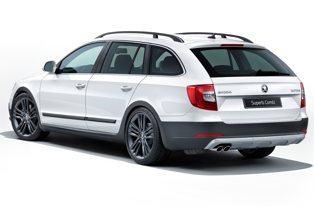 S paketem Outdoor je důkladně modernizovaný Superb Combi dobře vybavený i pro provoz mimo běžné silnice: nápadným znakem jsou výrazné ochranné prvky kolem celého vozu. Vpředu i vzadu jsou nové nárazníky s černými plastovými ochrannými prvky. Robustní plastové díly překrývají také prahy a lemy blatníků. Výraznými designovými prvky jsou stříbrně lakované části předního a zadního nárazníku na exponovaných místech. Praktické jsou také boční ochranné lišty na obou párech dveří a nákladové hraně zavazadelníku.