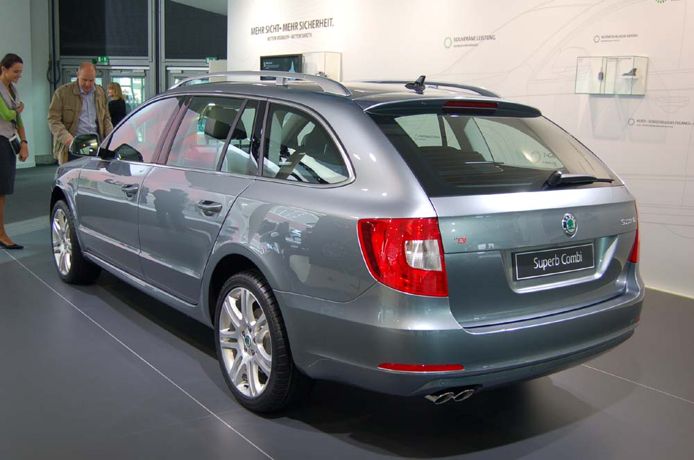 Nová Škoda Superb Combi, prezentovaná ve světové premiéře na autosalonu ve Frankfurtu, bude v České republice k dispozici ve čtyřech výbavových stupních: Comfort, Ambition, Elegance a Exclusive, od 589 900 Kč s benzinovým čtyřválcem 1.4 TSI.