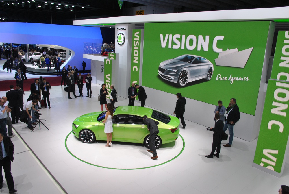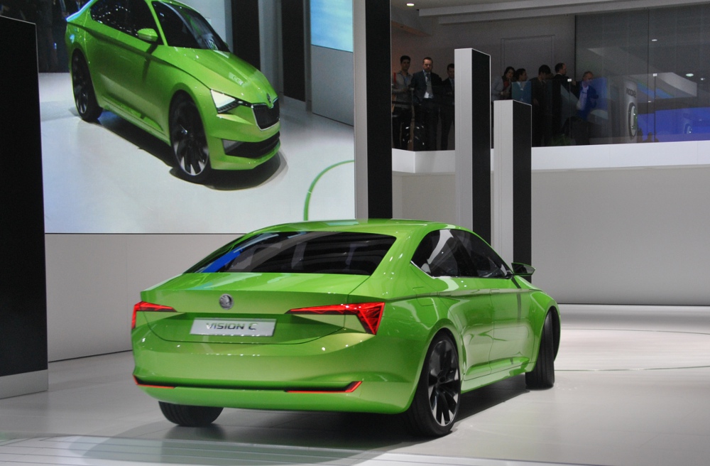 Jednou z hvězd právě probíhajícího Ženevského autosalonu je designérská studie Škoda VisionC v zelené, pro Škodu typické barvě. Pětidveřové kupé je s největší pravděpodobností předzvěstí příští generace Superbu.