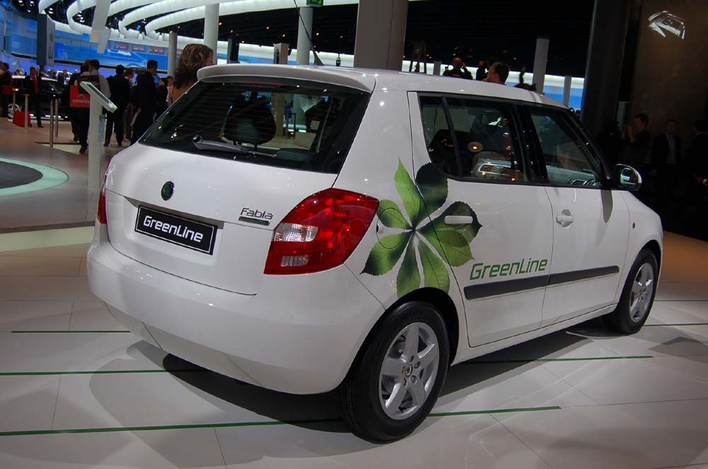 Cílem dosavadního vývoje je v rámci modelové řady Fabia dosažení hodnoty nepřesahující 110 g/km emisí CO, a to bez výrazného omezení výběru mimořádných výbav. Ke snížení hmotnosti přispělo mj. odstranění rezervního kola (nahradila jej lepicí sada) a použití lehkých kol. Palivo i emise snižují naopak speciální pneumatiky se sníženým valivým odporem nebo také delší převody, jiné nastavení řídicí jednotky a aerodynamické úpravy karosérie. dále pomáhají šetřit palivo i životní prostředí. Obě verze jsou vybaveny úsporným vznětovým přeplňovaným tříválcem 1.4 TDI o výkonu 59 kW s filtrem pevných částic. Ke snížení hmotnosti přispělo mj. odstranění rezervního kola nebo použití lehkých kol. Fabia Green Line bude na našem trhu k dispozici na jaře příštího roku