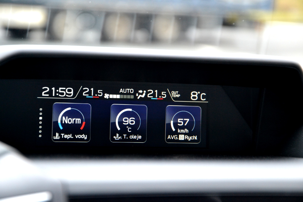 Systém EyeSight, součást standardní výbavy, poskytuje mimořádně spolehlivou preventivní bezpečnost prostřednictvím funkcí, jako jsou předkolizní brzdění, adaptivní tempomat a hlídání jízdních pruhů Assist Traffic Lane.