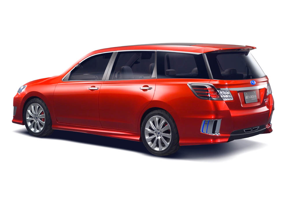 Koncept EXIGA nabízí pohodlný prostor pro sedm dospělých pasažérů a vzrušující jízdní výkony. Odráží mnoho let technických výzkumů v oblasti kategorie kombi (Touring Wagon), samozřejmě opět vychází z koncepce spojení motoru Boxer s excelentním systémem pohonu všech kol Symmetrical AWD. Díky velké panoramatické střeše a „divadelnímu uspořádání“ tří řad sedadel, si mohou všichni cestující užívat skvělý výhled z vozu, ať už sedí na jakémkoliv sedadle ve voze. Svižnou a precizní jízdu zajišťuje horizontálně uložený přeplňovaný motor Boxer 2.0 s protiběžnými písty spolupracující s pětistupňovou automatickou převodovkou. Karoserie v červené metalíze „Candy Red Pearl“ zdůrazňuje vzdušné řešení a „feeling“ vozu.