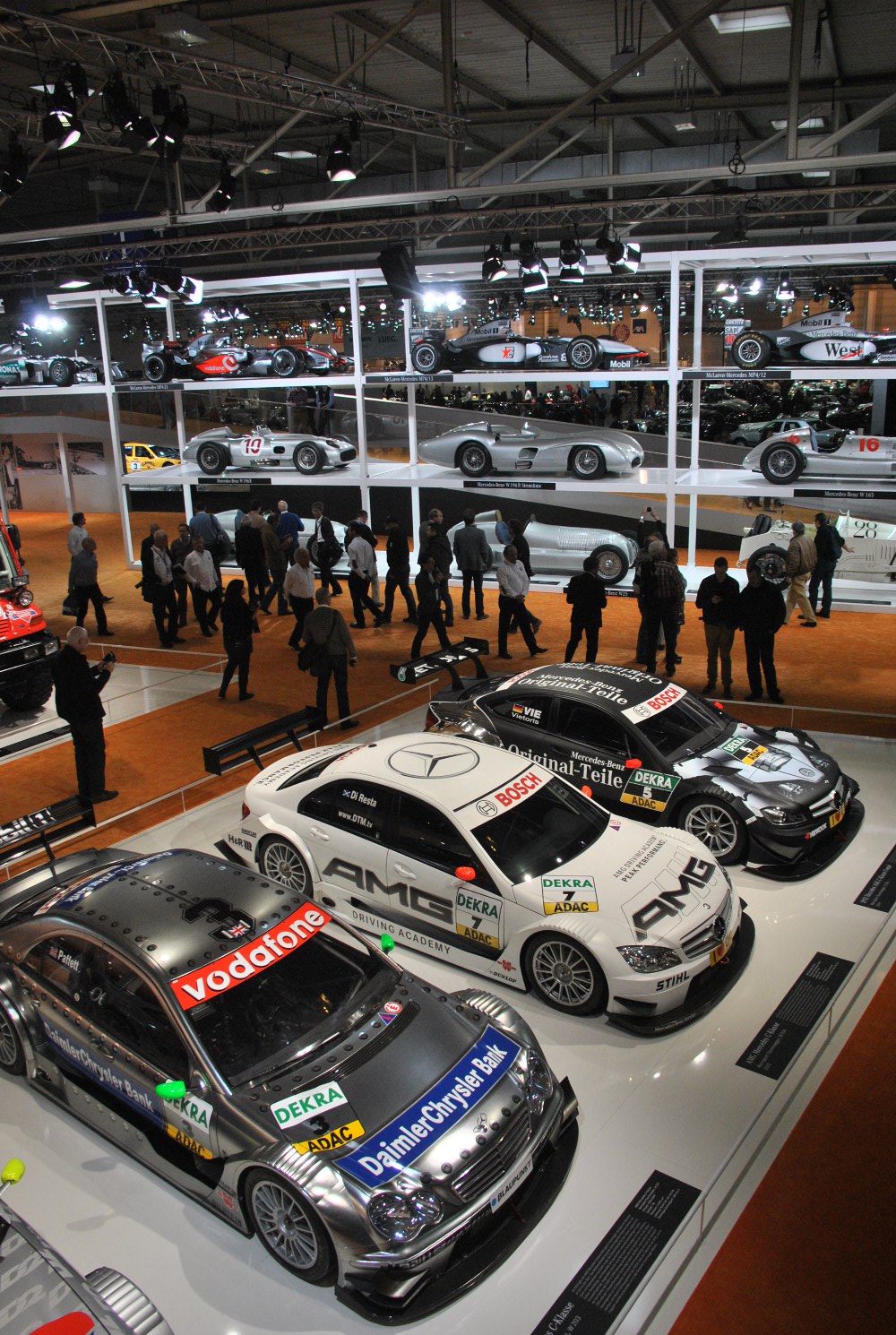 Vedle přehlídky deseti unikátních vozů Zagato byla asi nejpůsobivější expozice značky Mercedes Benz. Pokud byste chtěli v těchto dnech shlédnout sportovní automobily s třícípou hvězdou ve znaku, tak musíte jedině do Essenu, neboť v muzeum nezbylo skoro nic. Celkem 36 závodních vozidel od Mercedesu Benz Grand Prix, vítězného automobilu Grand Prix Francie v Lyonu v roce 1919. Dále třináct monopostů Formule 1 včetně Indy Car, osm závodních automobilů, šest cestovních vozů DTM, pět soutěžních speciálů, ale také starý přepravník, rekordní vůz nebo Mercedes Benz F1 Safety Car. Automobily ze Stuttgartu, nejen závodní, ale i sériové zaplnily celou jednu halu. Ve středu jsme se tady setkali mj. s Hansem Herrmanem, Klausem Ludwigem, Dieterem Glemserem a Ellen Lohrovou.