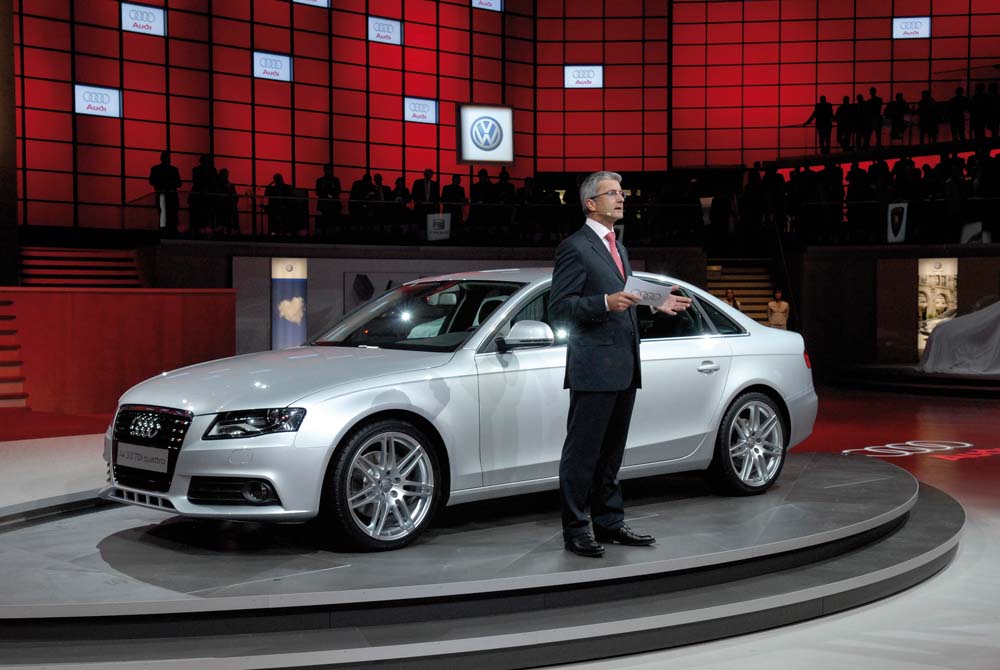 Jako první odhalilo Audi novou limuzínu A4, která převádí technologie horní třídy do střední. Další z rodiny Audi, které bude šlapat na paty konkurenčnímu BMW dokazuje, jak velký skok udělaly modely z Ingolstadtu za poslední roky. Během večera pozvalo Audi na podium také Nick Masona, bubeníka slavné skupiny Pink Floyd a účastníka veteránských závodů se slavným Auto Unionem.