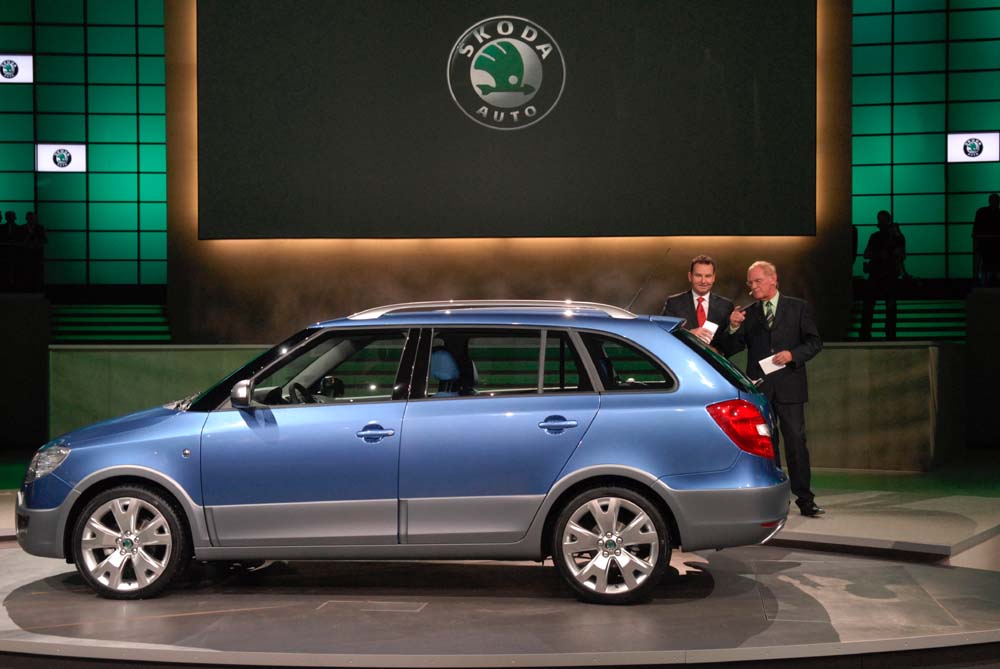 V předvečer frankfurtského autosalonu uspořádal Volkswagen Group ve velké basketbalové hale představení osmi světových premiér jednou ranou. Pod novým koncernovým logem Driving Ideas nechyběla ani Škoda Fabia Combi.