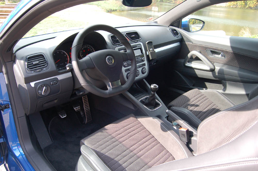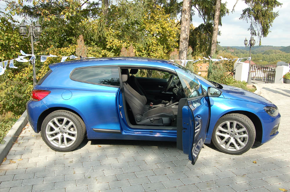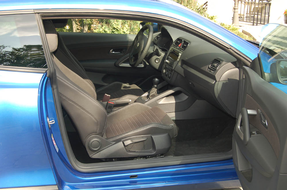 Nové Scirocco se navíc přibližuje dennímu používání po běžných silnicích. Dveře jdou otevřít takřka pod úhlem devadesáti stupňů, takže se můžete pohodlně usadit nejen vpředu, ale také na dvě samostatná sedadla vzadu. Přední sedadla vás doslova obepnou tak, jak se na sportovní automobil sluší a patří. Perfektní boční opora vás dobře podrží i při rychlejším průjezdu zatáček. Navíc jsou umístěna nízko nad zemí, před sebou máte poměrně úzké čelní okno a sportovní volant ve spodní části zploštělý. Když se nepotřebujete kochat pohledem na nebe, tak je velikost okna postačující.