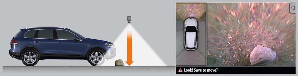 Pokud řidič začne v tomto okamžiku brzdit, vytvoří Touareg automaticky tak velký brzdný tlak, který je nezbytný pro odvrácení kolize. Za optimálních rámcových podmínek lze zabránit nárazu do vpředu jedoucího vozidla. Pokud se řidič rozhodne vyhnout se překážce, pak dojde u modelů se vzduchovým odpružením ke zlepšení jízdní dynamiky přechodem na tužší charakteristiku tlumičů.