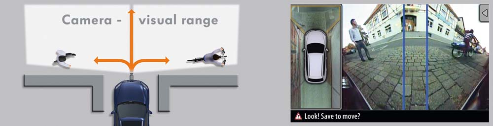 Díky systému Area View lze poprvé nahlížet „za roh“, a to nejen dopředu, ale i dozadu, což je výhoda například na nepřehledných výjezdech nebo křižovatkách. Tato funkce je umožněna širokoúhlou optikou přední a zadní kamery s úhlem snímání 180°.