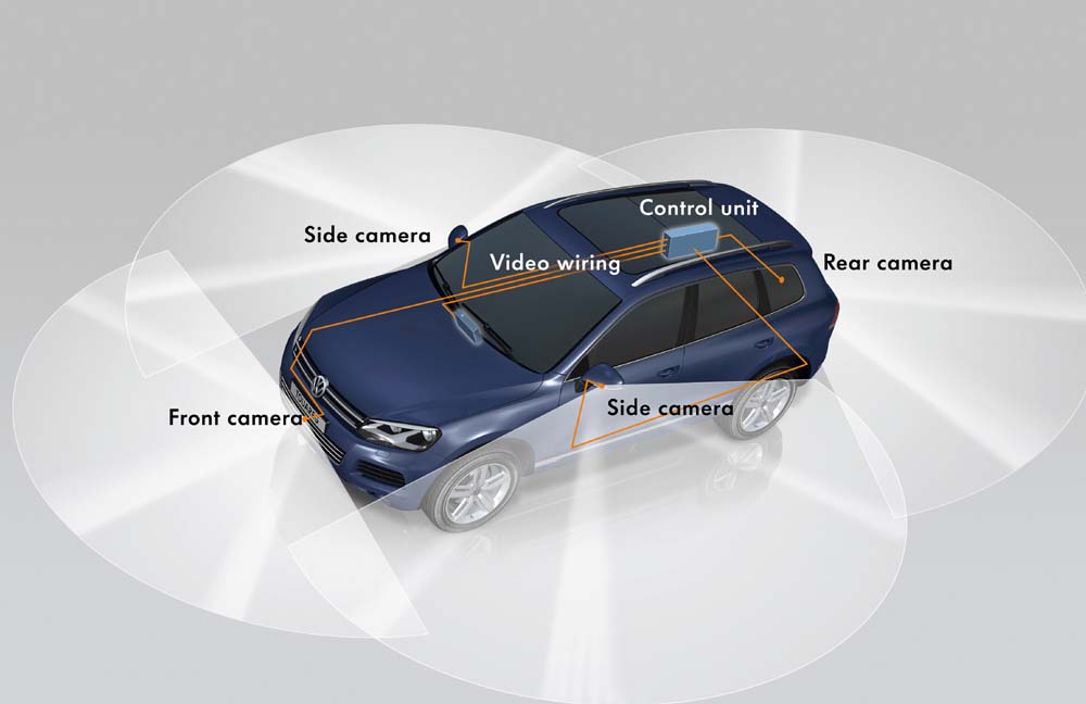 Area View je první systém sledování celého okolí vozidla použitý v VW a přenáší obraz čtyř kamer (v zadním víku, ve zpětných zrcátkách a v masce chladiče) na centrální dotykový displej ve středové konzole. Funkce Splitscreen navíc umožňuje současné zobrazení většího počtu obrazů. Řídicí jednotka také vypočítává ze čtyř jednotlivých obrazů kamer celkový pohled na okolí vozidla, a to z perspektivy virtuální kamery umístěné nad vozidlem. V závislosti na nastaveném zobrazení je obraz doplňován statickými a dynamickými pomocnými liniemi.