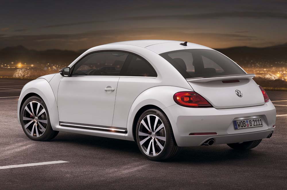 Přesto zůstávají zachovány všechny stylistické prvky charakteristické pro Beetle. Žádný div, vždyť právě Beetle, Microbus a první Golf určují DNA designu VW. Mezi typické znaky Brouka patří kulaté světlomety (poprvé na přání k dispozici v bi-xenonovém provedení včetně světlometů LED pro denní svícení), vystouplé blatníky, tvar kapoty a zadního víka, bočních prahů a možnost montáže velkých kol (nyní s průměrem až 19“). Novinkou je zadní spoiler (standardně pro motory TSI – 118 kW / 160 k a 147 kW / 200 k), který vytváří přítlak, důležitý pro automobil s rychlostí až 225 km/h. Horní plocha zadního spoileru je černá, zatímco spodní v barvě karoserie.