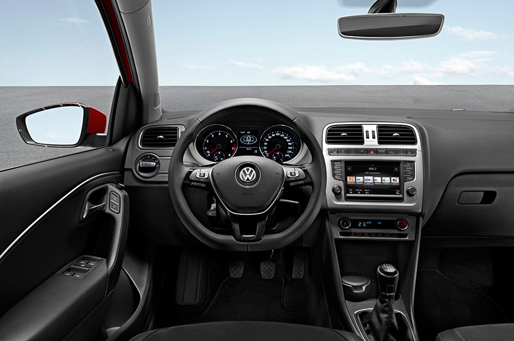 Bohatá sériová výbava nového modelu Polo Comfortline zahrnuje mj. manuální klimatizaci, rádio Composition Colour s 5“ barevným dotykovým displejem, přehrávač CD/MP3, palubní počítač Medium, kůží obšitý volant, hlavici řadicí páky a madlo ruční brzdy, loketní opěrku, multikolizní brzdu a 15“ ocelová kola.