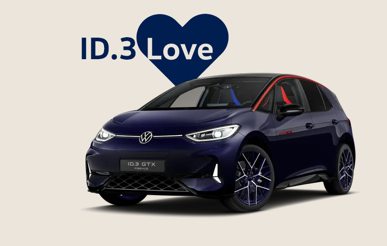 Čtveřici modelů z edice Love uzavírá Volkswagen ID.3 Love (od 979 900 Kč s bonusem za protiúčet), jeho základem je sportovně laděná verze ID.3 GTX Performance FIRE+ICE (240 kW) s exkluzivním lakováním a výraznými detaily exteriéru i interiéru. 79kWh baterii lze střídavým proudem s nabíjecím výkonem 11 kW nebo stejnosměrným proudem s nabíjecím výkonem až 185 kW. Potěšení ze sportovní a současně komfortní jízdy umocní adaptivní regulace podvozku DCC ve spojení s 20“ koly z lehké slitiny. Součástí bohaté výbavy jsou mimo jiné světlomety IQ.LIGHT LED Matrix a head-up displej s rozšířenou realitou.