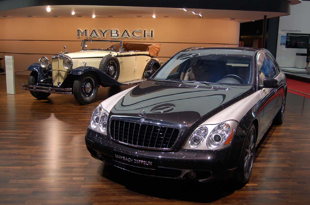 U příležitosti světové premiéry Maybachu Zeppelin, jehož výroba je limitována pouhými sto kusy, nemohl chybět ani jeho předchůdce z roku 1930, představující jeden z vrcholů techniky. Luxusní automobil, který vyvinul Karl Maybach, od jehož narození uplyne letos 130 let, poháněl výkonný dvanáctiválec, odvozený od pohonné jednotky pro vzducholodě Ferdinand Graf von Zeppelin (pohánělo jej pět vidlicových dvanáctiválců, každý o výkonu 550 k). Z objemu osmi litrů poskytoval výkon 150 nebo 200 k. Vzhledem k takřka třítunové hmotnosti bylo třeba řidičského průkazu pro nákladní automobily. V letech 1921 až 41 vyrobila firma Maybach celkem 2095 vozidel, kterým se díky kvalitě přezdívalo „německý Rolls Royce“. Výrobce zpravidla dodával pouze podvozky, které pak „oblékaly“ renomované karosářské firmy.