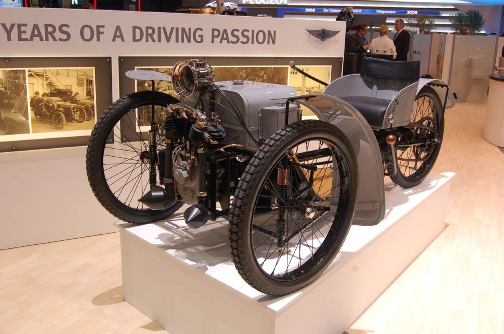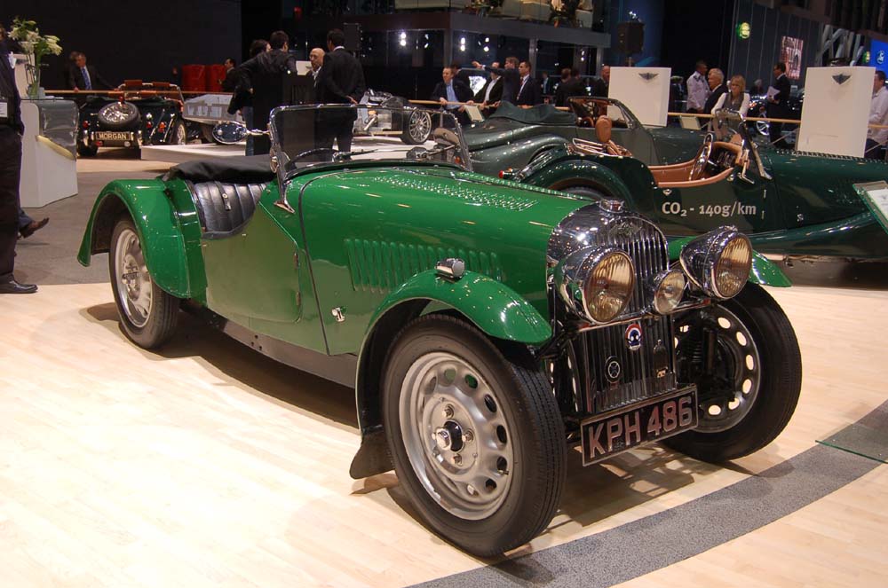 K vidění byla kromě nejnovějších modelů…také první motorová tříkolka z roku 1910, která britskou firmu založenou ve stejném roce, vlastně proslavila. Není divu, tříkolky Morgan se vyráběly až do roku 1952. První prototypy zkonstruoval H.F.S.Morgan již v letech 1908 a 1909, a o rok později začal se sériovou výrobou. Tříkolky Morgan s vidlicovým dvouválcem umístěným vpředu vynikaly jednoduchou údržbou, k řízení stačil průkaz na motocykl a výhodou byla i nízká daň. Teprve v roce 1935 se objevil první automobil – typ 4/4 zpočátku se čtyřválcem Coventry Climax 1.2, později s motorem Standard 1.3. Zatímco technika se postupem let měnila, tvary zůstaly zachovány v podstatě až do současnosti.