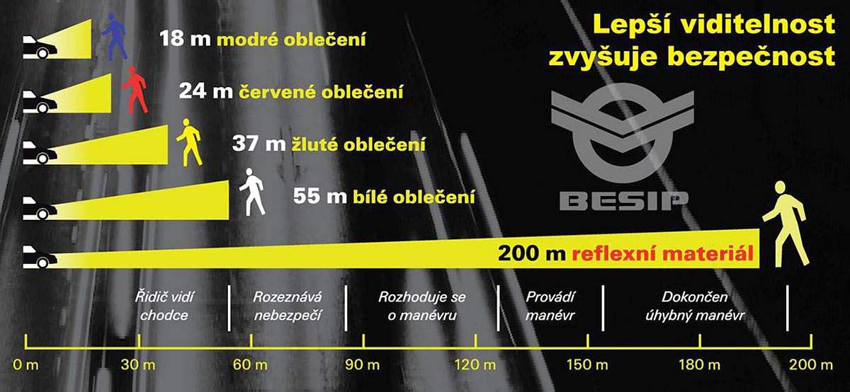 Pozn.red.: Z praxe víme, že reflexní pásky je dobré používat, ale ne vždy jsou dostačující. Třeba v dešti, sněžení, oslnění protijedoucím vozidlem zahlédneme chodce až na poslední chvíli, i když má pásku. Znám spoustu lidí, kteří se nestydí vzít na sebe při chůzi i reflexní vestu.