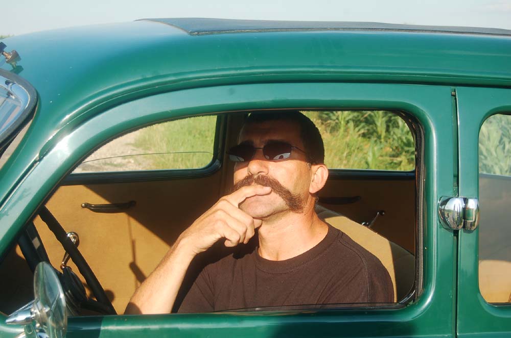 Protože jsme potřebovali natočit jednoho veterána, tak jsme pospíchali zpátky na letiště. Tady byly totiž připraveny historické modely řady 400, s nimiž jsme se mohli sami odvést do hotelu v Belfortu. My jsme však chtěli točit, a proto jsme si vybrali typ 402 Limousine z roku 1937. Předválečné vozy byly však k dispozici jen s řidičem, tak jsme požádali o spolupráci Sylvaina Eyerscheta, typického Francouze z Muzea Peugeot. A začali honem natáčet, protože moc času nám nezbývalo. Tady musíme poděkovat paní Radce Matthey z PR oddělení společnosti Peugeot ČR, která nám po celou dobu pomáhala díky její perfektní francouzštině komunikovat se Sylvainem, a to i během rozhovoru pro televizní Auto Moto Revue. Jirka Středa je však profesionál tělem a duší, navíc umí perfektně točit z ruky, a jak říkal, „první musí být dobrá“, jsme vše zvládli včetně pořízení jízdních záběrů.