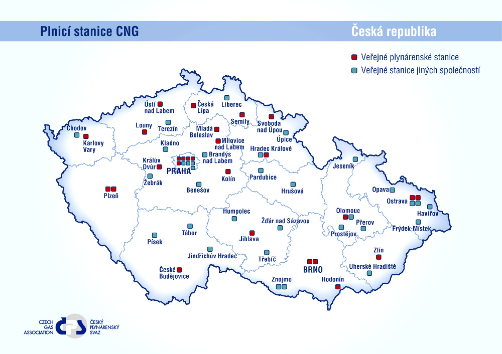 V současné době je motoristům u nás k dispozici už celkem 60 plnicích CNG stanic, v Evropě přes 4 tisíce. Brzy, většinou ještě letos, se otevře dalších nejméně 16 stanic, a to 3 stanice v Praze, 2 v Plzni, Břeclavi, Českém Krumlově, Gajeru u Litomyšle, Havířově, Jeseníku, Kosmonosech, Olomouci, Příbrami, ve Slaném, Vyškově, Zábřehu aj. Do rozvoje investují i automobilky, řidiči si už dnes mohou vybrat z již více než 60 druhů sériově vyráběných vozů.