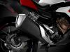 Nový kratší tlumič výfuku přispívá k centralizaci hmoty a jeho vnitřní konstrukce byla upravena tak, aby stroj vydával příjemný hluboký a ostrý zvuk.
