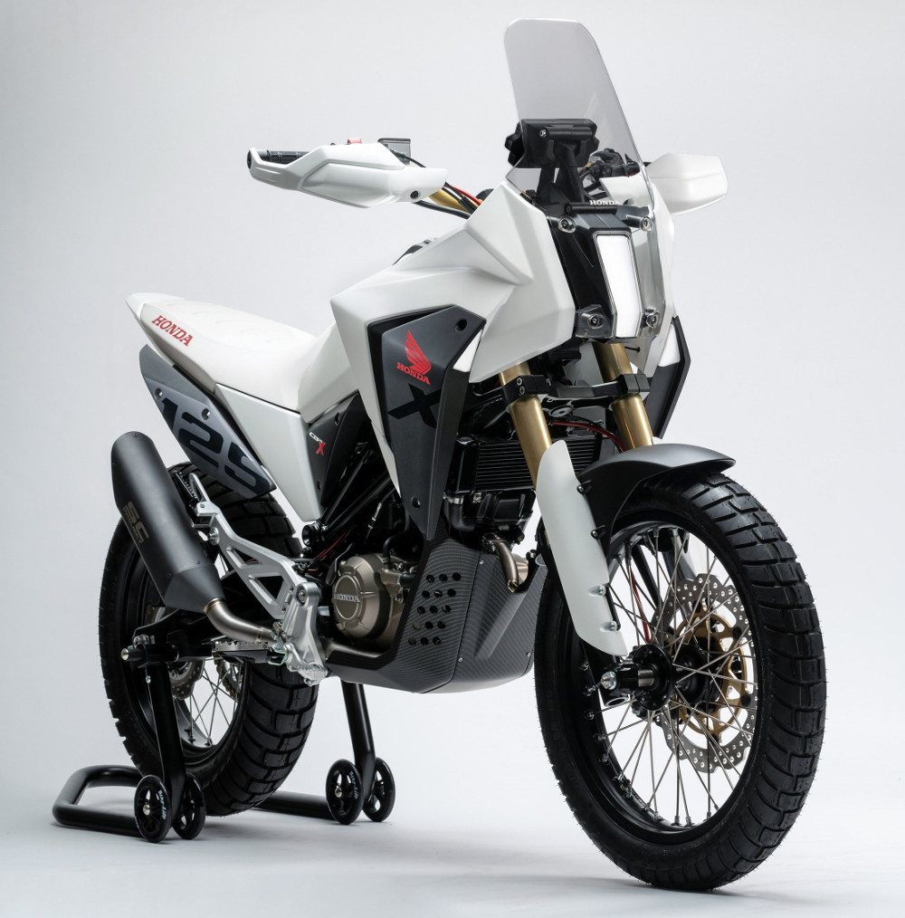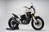 Naopak CB125X v bílém provedení je „X“ model se zřetelným enduro zaměřením, jenž je charakterizován velkým množstvím precizně vedených linií a robustními povrchy, jež evokují svět science fiction. Linie jsou atletické a zároveň čisté, zatímco sedlo a rám plynule dotvářejí vpřed skloněnou siluetu, z níž vyzařuje aura agresivní dynamiky.
