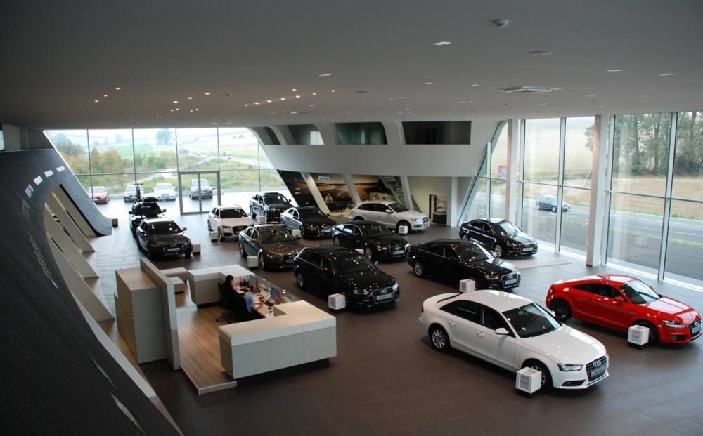 Unikátní budova je postavena na 120 pilotech a má 2 nadzemní a jedno podzemní patro. Celková zastavěná plocha činí 5300 m2. Pro sklad nových vozů a parkoviště pro zákazníky je vyčleněno podzemní parkoviště s plochou 2500 m2. Celou stavbu charakterizuje maximální otevřenost a důraz na jednoduchost procesů.