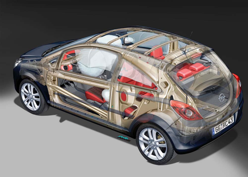 Nová Corsa myslí na bezpečnost silničního provozu promyšleným systémem brzdových světel, která se rozblikají (s frekvencí 5 záblesků za sekundu), pokud se při prudkém brždění aktivuje ABS, což včas upozorní řidiče vzadu jedoucích vozů na kolizní situaci. Při aktivaci airbagů se rozsvítí varovné osvětlení vozu. Riziko poranění chodců při případné kolizi snižuje speciální konstrukce předního nárazníku a kapoty motoru, jejich struktura je vyplněna vypěňovaným materiálem.