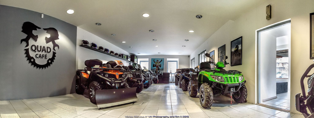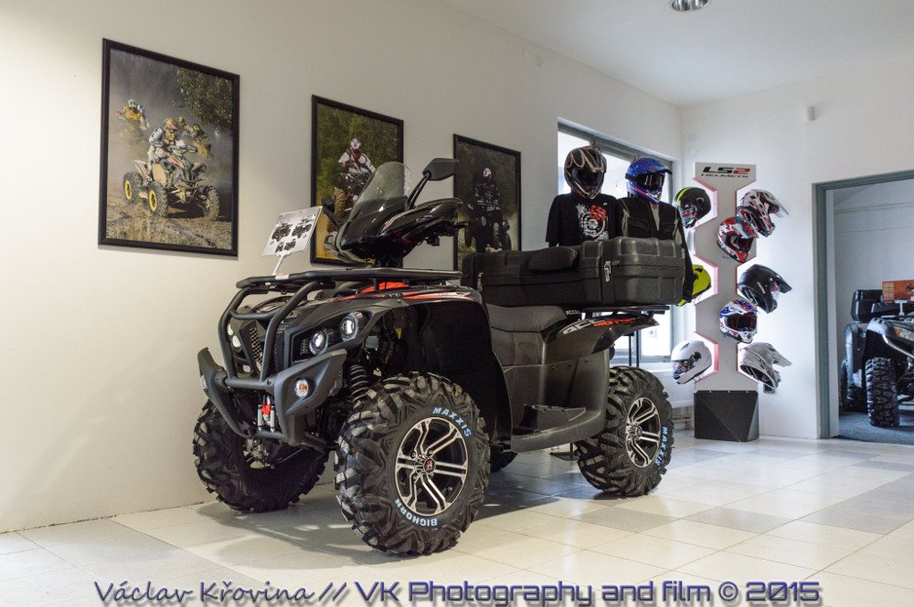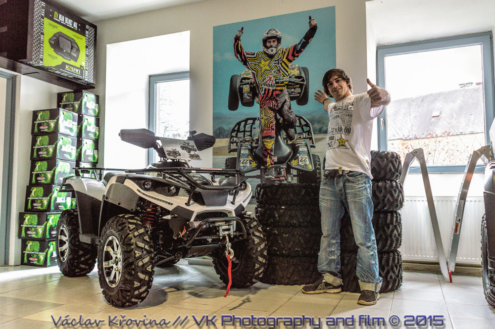 Testovací jezdec a občasný závodník chce předat dál zkušenosti nabyté při práci v našem jediném čtyřkolkářském časopisu a otevřel si trochu netradiční shop. Můžete přijít nebo přijet, sednout si na baru na kafe a poklábosit. Nebo si třeba na rozlehlém showroomu vybrat novou „kolku“ (zatím to jsou značky Arctic Cat, CF Moto, Access, TGB, SMC, Linhai), helmu, příslušenství nebo oblečení, případně nechat obstarat svého miláčka. A třeba si u toho přečíst nový Quad.