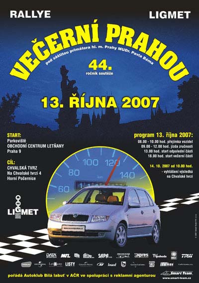 Oblíbená orientační soutěž Rallye Ligmet večerní Prahou, která je určená pro širokou motoristickou veřejnost se uskuteční v sobotu 13. října. Pořádají ji tradičně Autoklub Bílá Labuť ve spolupráci s reklamní agenturou Smart team P.H.
