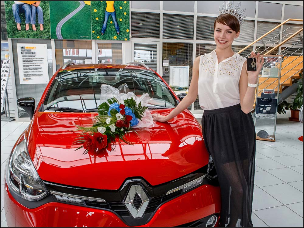 Nový model Clio získal pro svůj design několik prestižních cen. Červená barva je unikátní barvou z designového centra Renaultu. Červená se prolíná celým vozem včetně palubní desky stejné barvy. „Tento vůz jsme nechali vyrobit speciálně pro novou Českou Miss, protože jsme byli přesvědčení, že číslo 7 vyhraje. Krása ke kráse, tak to má být“, komentuje výběr vozu Jitka Skaličková, PR manažerka společnosti Renault Česká republika.