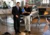 V závodě Škoda v Mladé Boleslavi převzal Gernard Plattner od Jaroslava Černého (na snímku) z oddělení Podnikové komunikace, měšec s 1000 jednoeurových mincí a úkol, podniknout s vozem rodinnou dovolenou po 35 zemích, přičemž náklady na pohonné hmoty nesmí překročit výše uvedenou sumu.