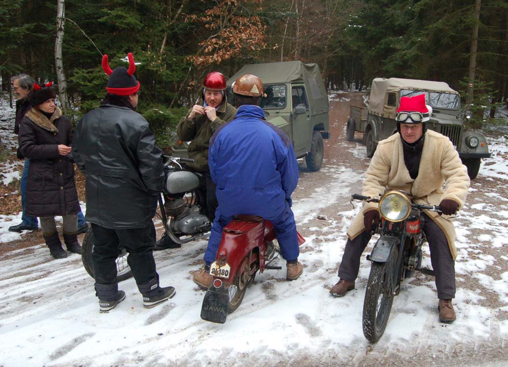 Právě Vencu jsem „vyfasoval“ jako spolujezdce do auta, a tak jsem měl o zábavu postaráno. Zase jednou byl ve formě, sršel vtipem a dobrými nápady. Kytínské berle jsem se zúčastnil už vloni, kdy mi přátelé připravili Land Rover Defender. Ale protože na něm už nefungují brzdy, a jaksi nejsou lidi, tak mi zapůjčili francouzský vojenský automobil Auverland s dieselovým motorem Peugeoet. Na renovaci sice teprve čeká, ale naštěstí jej kytínští dovezli z Francie v pojízdném stavu, a tak jsem mohl vyrazit směr Halouny na vepřové hody a potom na „srnčí na šípkové“ do občerstvení Na rovinách. Kromě toho, že nefungoval připojitelný pohon všech kol, tak jel bezvadně a nenechal mě ve štychu jako vloni Defík v samém závěru.