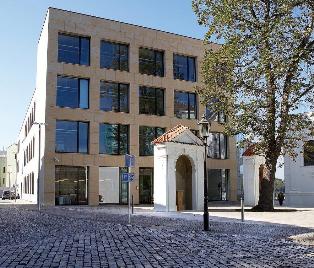 Stavba i přes některé nutné zásahy do projektových plánů víceméně kopíruje původní návrh. Komplikací byla především nutnost skloubit představy autorů s omezeními ochrany památkově historických hodnot. Například pro zachování historických fasád bylo propojení původních staveb s novostavbami řešeno podzemní chodbou.