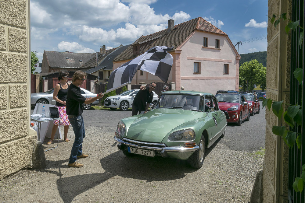 V neděli ráno se vozy sjely do dealerství Auto Babiš v Mnichovicích u Prahy, odkud začala spanilá jízda založená na principu veteránských rallye.