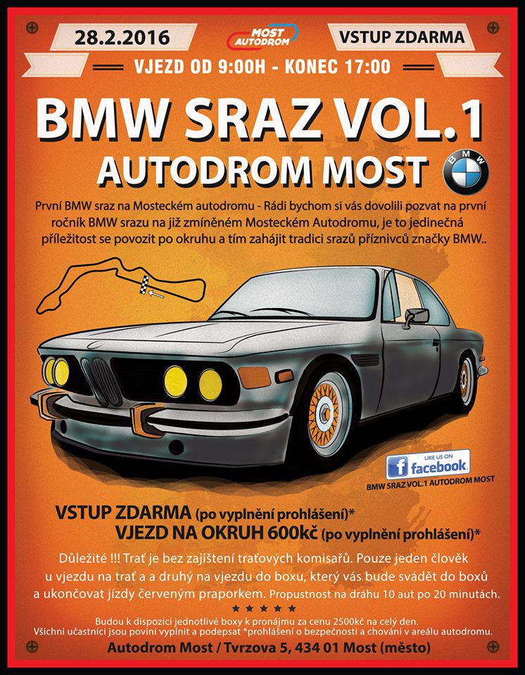 Do areálu autodromu v Mostě se v neděli 28. února sjedou majitelé vozů BMW. Historicky první sraz milovníků tradičního německého výrobce na severu Čech je premiérou i pro mostecký závodní okruh.