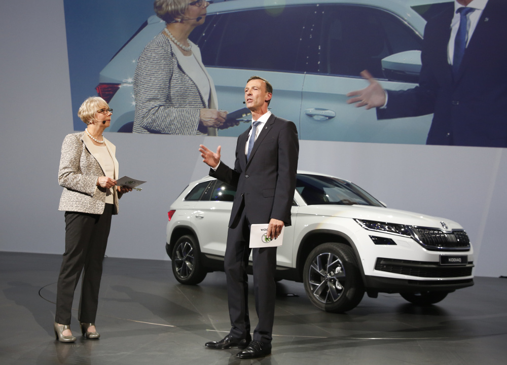V rámci světové premiéry umožnili vedle předsedy představenstva společnosti ŠKODA AUTO Bernharda Maiera také Christian Strube, člen představenstva společnosti ŠKODA AUTO odpovědný za oblast technického vývoje, Werner Eichhorn, člen představenstva společnosti ŠKODA AUTO odpovědný za oblast prodeje a marketingu, i šéfdesigner značky ŠKODA Jozef Kabaň nahlédnout do vývoje a designu nové ŠKODY KODIAQ.