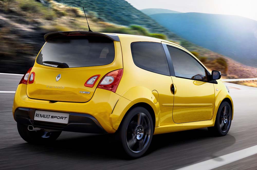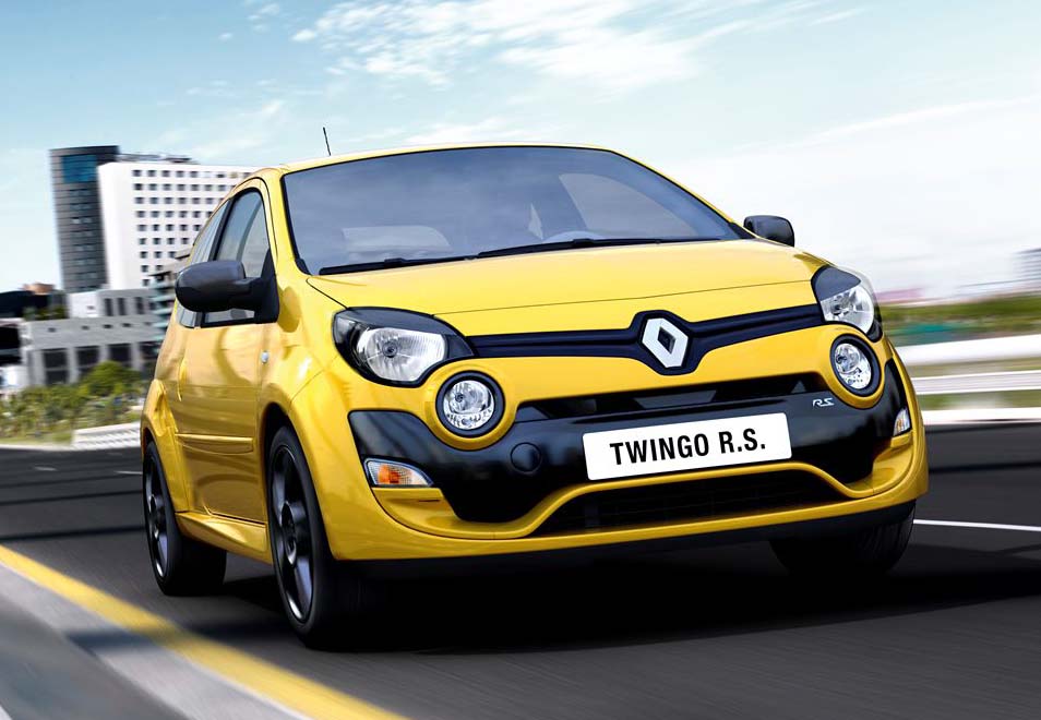 Twingo R.S. má dynamickou masku se čtyřmi světlomety a uprostřed předního nárazníku je lamela typu F1. Atmosférická pohonná jednotka 1,6 16V R.S. dává největší výkon 133 k (98 kW) a točivý moment 160 N.m. Přesto má Twingo spotřebu 6,5 l/100 km. Podvozek Sport může být na přání také ve verzi Cup, kde je světlá výška snížena o 4 mm.