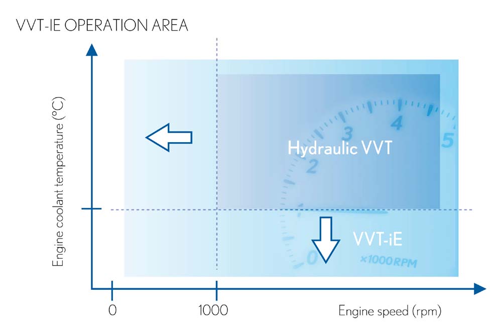 Systém VVT-i je dále zdokonalen technologií VVT-iE (inteligentní proměnné časování ventilů – elektrické), což je elektromotorem ovládaný systém proměnného časování ventilů pro vačkové hřídele sacích ventilů. Oproti konvenčním, hydraulicky ovládaným systémům, je flexibilnější a má rychlejší reakci, čímž zvyšuje točivý moment a snižuje spotřebu paliva i emise napříč širokým spektrem otáček i pracovních teplot.