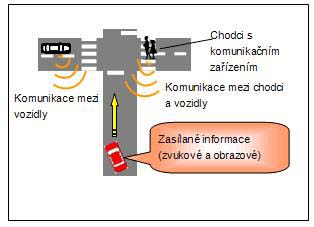 Automobily si vzájemně vyměňují informace. Řidič má k dispozici zvukové a obrazové informace o blížícím se vozidlu a jeho pozici