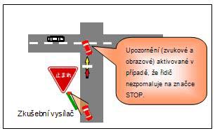 Systém „vozovka – vůz“ předcházející průjezdu přes značku STOP