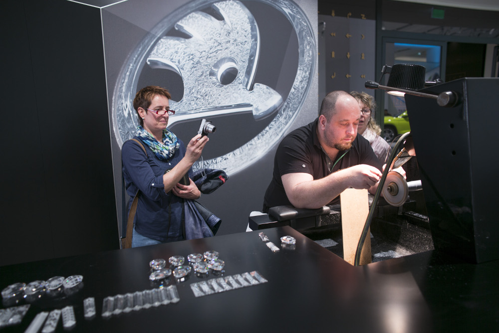 Proto si návštěvníci centra DRIVE. mohou pod profesionálním vedením českého skláře vybrousit vlastní předmět z křišťálu a odnést si jej domů.