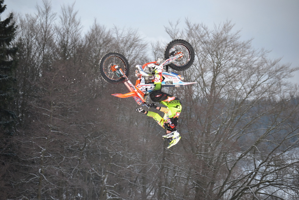 Ve třech samostatných blocích se divákům představili společně Petr Pilát a italský host Jason Cesco. Salta s motocyklem jsme už viděli, ale se sněžným skútrem, které předváděl italský host z Dolomit byly neskutečným zážitkem a popíraly veškeré fyzikální zákony.