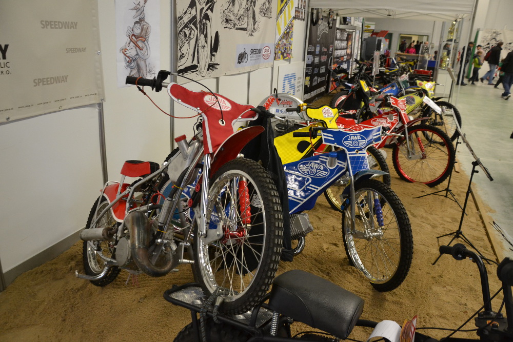 Tradičně zajímavou expozici mají plochodrážní stroje a na výstavě jsme si několika exponáty připomněli i 65 výroby motocyklů v Divišově, tedy značky ESO.