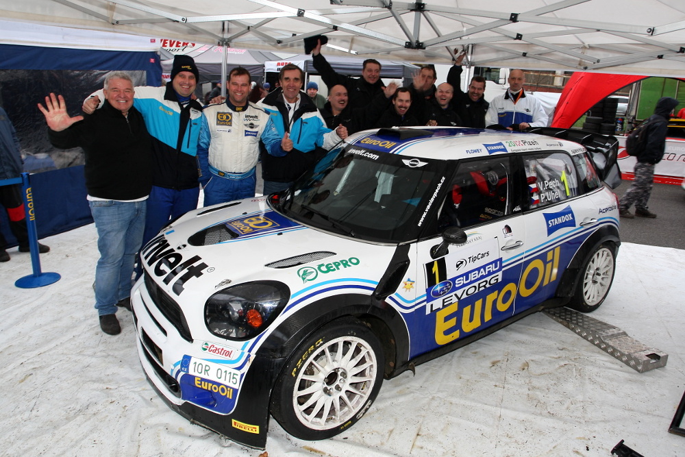 I letos se EuroOil – invelt team opravdu hodně snažil vyhrát tuto pražskou rallye, měl k tomu totiž velký důvod. „Pražský rallysprint byl posledním společným závodem s naším MINI, protože hned následující den si jej přebíral jeho nový majitel. Naše loučení bohužel nebylo vítězné, ale to už tak v rallysportu někdy bývá. Hned v první rychlostní zkoušce na startu nám praskla poloosa a s pouze hnanou přední nápravou jsme ztratili asi tak 25 vteřin. Naši mechanici auto bez problému opravili a my, s odhodláním stáhnout ztrátu, vyrazili do druhé rychlostní zkoušky,“ popisuje úvod závodu Václav Pech jun.