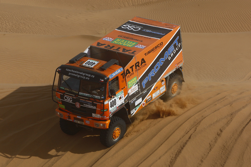 Tomeček s Jacinto si rozdělili první a druhé místo, třetí dojel nestárnoucí Noël Essers s MANem. Stejné pořadí platí i celkově. Večer bylo v cíli sedm z deseti kamionů. Mezi chybějícími byla bohužel i posádka druhé české Tatry ve složení Petr Čapka a Zdeněk Voda. Podle informací z bivaku měli potíže s únikem oleje z motorového prostoru už v první etapě. Ve druhé neujeli ani 50 kilometrů a museli opravovat. Večer se pro ně vrátil sběrný kamion balai, jehož pilot Petr Foltýn situaci popsal následovně: „Nejdřív jsme s baléčkem povytahovali z dun osobní auta. Teď táhnu Petrovu Tatru. Nedaří se diagnostikovat problém, jestli je to v motoru nebo se jedná o turbo. Budeme se muset dostat do bivaku a tam se uvidí. Musíme jet pomalu a takhle bychom určitě duny neprojeli. Ale ještě je třeba jet po trase, po 100 kilometrech budeme nakládat jednu motorku.“ Dodejme, že Čapka s Vodou zcela jistě nic nevzdají, a budou se snažit pokračovat v závodě dál. Byť za cenu penalizací.