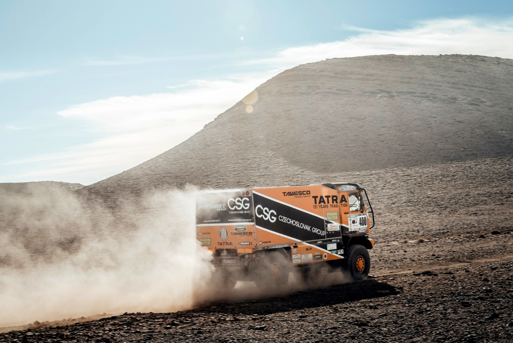 Na trati jako jeden z mála neměl žádné zásadní zdržení. „Docela brzy po startu jsem dojel stojící bílé Iveco. Měli defekt a asi se jim to nějak nevedlo dát do pořádku, protože hodně ztratili, “ upozorňuje na potíže dosud vedoucího belgického kamionu pilotovaného Igorem Bouwensem. Problémů zřejmě měli víc, protože na Tomečka dnes ztratili téměř tři hodiny. Největší Tomečkovou soupeřkou se tak stala po včerejšku druhá Elisabete Jacinto s kamionem MAN. „Elisabete se hodně zlepšila v dunách. Dřív v nich mívala velké problémy, to už dnes tak moc neplatí,“ oceňuje Tomeček. „Dnes jsem narazil na její stopy a jel po nich, až jsem ji přece jen našel stát na vrcholku jedné duny. Tam jsem ji předjel. A upřímně řečeno, ještěže tady ty duny máme. Elisabete jezdí výborně na tvrdém povrchu, tam bych se před ni nejspíš nedokázal dostat,“ přiznává český závodník.