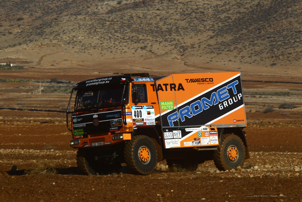 První marocká etapa sedmého ročníku Africa Eco Race dokonale prověřila celé startovní pole. PROMET/EXCALIBUR tým Tomáše Tomečka dokázal vybojovat druhé místo v kategorii kamionů a páté místo v celkové klasifikaci.