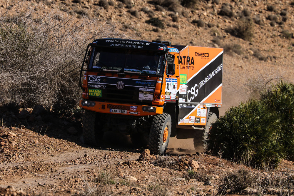 Druhý den zajel druhý čas za Gerardem de Rooyem a v celkovém pořadí mu patří druhá příčka mezi kamiony, mezi automobily je de Rooy sedmý, Tomeček šestnáctý. Bohužel se ztrátou už takřka hodinu. Ale soutěž je teprve na začátku