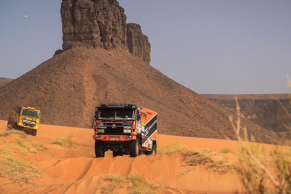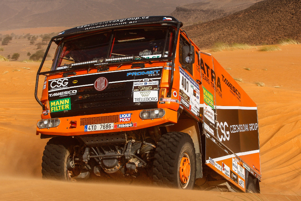 Do jedenácté etapy vyrážel Tomeček jako druhý za Van de Laarem. Technika jej ostatně podržela po všech 14 dní. Za celý závod řešil jen upadlý stěrač v jedné marocké etapě, v Mauritánii výměnu trubky kompresoru a později ještě trubky dohušťování, za jejíž poškození mohl defekt kola. “Bez kompresoru to nejede, a bez dohušťování nemáme šanci v terénu,” říká Tomáš Tomeček. “Proto tyhle díly sebou vždy vozím, a určitě to tak dělají všichni. Samozřejmě je mají naložené i naše baléčka.“